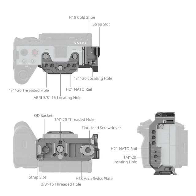 Rychloupínací poloviční klec SmallRig HawkLock pro Sony FX3 / FX30 4772 je navržena tak, aby chránila fotoaparát a poskytovala body pro montáž příslušenství. Modulární klec se skládá z horní desky (lišta NATO) a klece ve tvaru L. Kolejnice NATO je na horní straně upevněna pomocí dvou šroubů 1/4"-20 a je odstraněna, aby bylo možné nainstalovat originální horní úchyt XLR; klec ve tvaru L je upevněna pomocí šroubu 1/4"-20 na levé straně a ve spodní části, aby se zabránilo zkroucení, s ochranou proti poškrábání. Patentovaná, vlastnoručně vyvinutá rychloupínací konstrukce (pojmenovaná HawkLock) pokrývá studenou botku, lištu NATO a destičku Arca-Swiss.