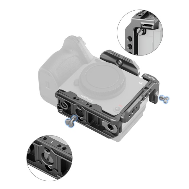 Rychloupínací poloviční klec SmallRig HawkLock pro Sony FX3 / FX30 4772 je navržena tak, aby chránila kameru a poskytovala montážní body pro příslušenství. Modulární klec se skládá z horní desky (lišta NATO) a klece ve tvaru písmene L. Kolejnice NATO je na horní straně upevněna pomocí dvou šroubů 1/4"-20 a je odstraněna, aby bylo možné nainstalovat originální horní úchyt XLR; klec ve tvaru L je upevněna pomocí šroubu 1/4"-20 na levé straně a ve spodní části, aby se zabránilo zkroucení, s ochranou proti poškrábání. Patentovaná, vlastnoručně vyvinutá rychloupínací konstrukce (pojmenovaná HawkLock) pokrývá studenou botku, lištu NATO a destičku Arca-Swiss. Používá se ve spojení s ekologickým příslušenstvím HawkLock, jako je horní rukojeť 4483, boční rukojeť 4485, svorka Arca-Swiss 4486 atd. pro dosažení hladkého zasunutí a samosvoru pro zvýšení efektivity demontáže a zpětné montáže. Zároveň je kompatibilní s tradiční studenou botkou, svorkou NATO a ekologickým příslušenstvím Arca-Swiss Clamp. Kromě toho má klec vestavěné otvory se závitem 1/4"-20, polohovací otvor ARRI 3/8"-16, polohovací otvory 1/4"-20, zásuvku QD a otvor pro popruh a lze ji rozšířit o příslušenství, jako je Magic Arm 3873, horní rukojeť 2165C, tyčová svorka 3598, ramenní popruh QD, ruční popruh 3848 a ramenní popruh PSC2428 pro profesionální tvorbu. Součástí balení je také magnetický klíč pro snadnou montáž a demontáž.
