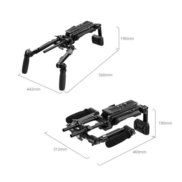 Všestranné možnosti upevnění pro bohaté rozšíření: Více upevňovacích bodů – včetně 1/4"-20 polohovacích otvorů, 1/4"-20 závitových otvorů a 15mm tyčových svorek – umožňuje upevnění příslušenství, jako jsou monitory, baterie V-mount a systémy follow focus.