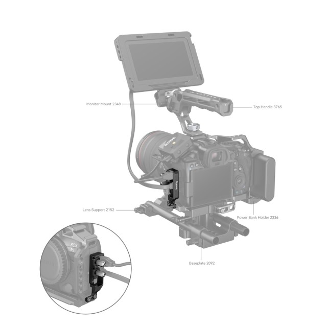 Kabelová svorka SmallRig HDMI a USB-C pro Canon EOS R5 / R6 / R5 C (2981B ) upevňuje kabely HDMI a USB-C ke kleci fotoaparátu, zajišťuje stabilní přenos signálu a zabraňuje náhodnému odpojení během natáčení.