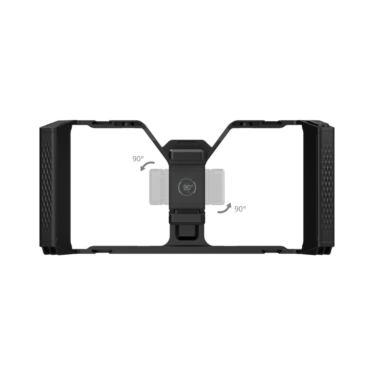 Její ergonomický design zajišťuje pohodlné a stabilní uchopení a umožňuje rychlé připojení telefonu. Několik otvorů se závitem 1/4"-20 a úchyty pro studenou patku usnadňují připojení různého příslušenství, jako jsou externí rukojeti, stativy, mikrofony a LED světla, což zvyšuje kvalitu produkce.