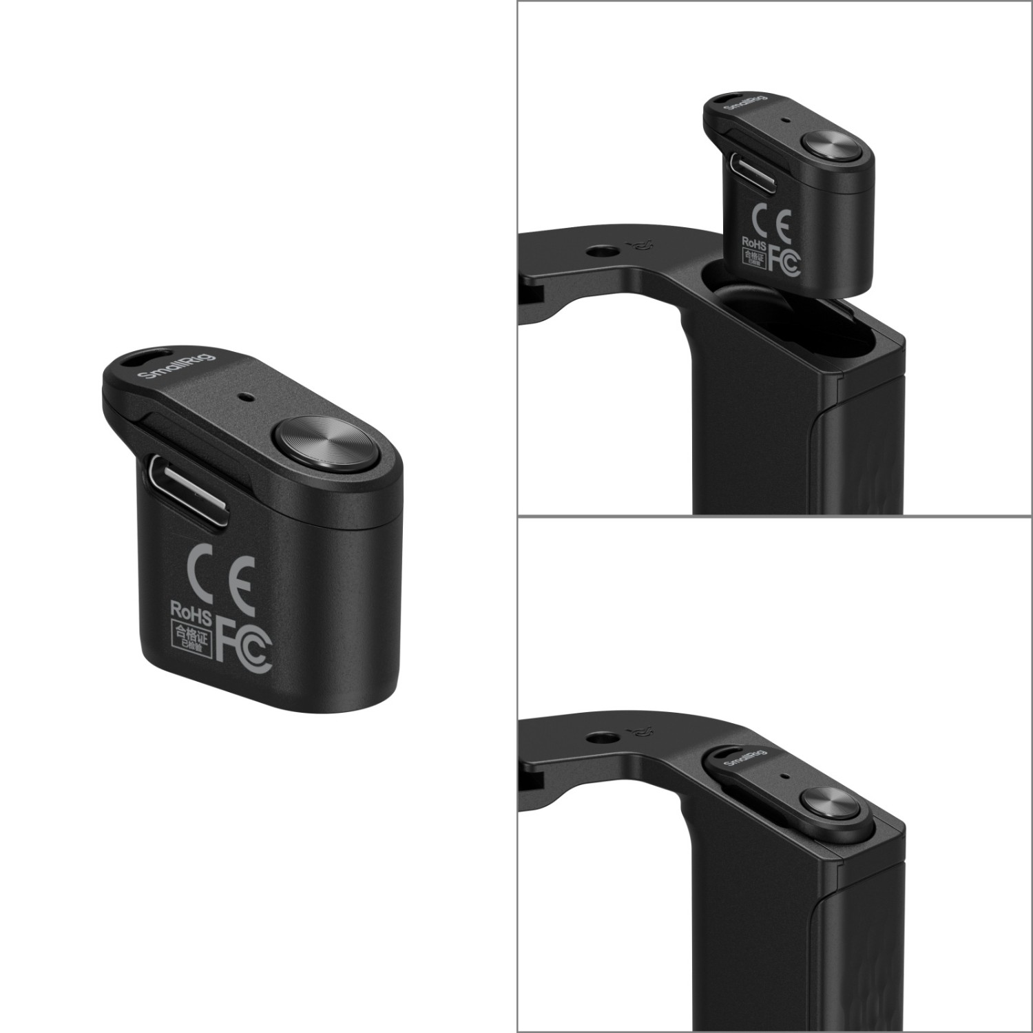Standardní zásuvka QD je kompatibilní s ekosystémem rychloupínacích zařízení SmallRig, včetně horních rukojetí a upevňovacích desek Arca-Swiss. Navíc je vybaven dvěma sadami otvorů pro zápěstní a ramenní popruh, které pojmou profesionální popruhy o průměru až 1 mm (0,04″), což umožňuje pohodlné přenášení mezi záběry. Svorka telefonu obsahuje měkkou gumu ve tvaru písmene V, která zabraňuje náhodnému spuštění tlačítka.