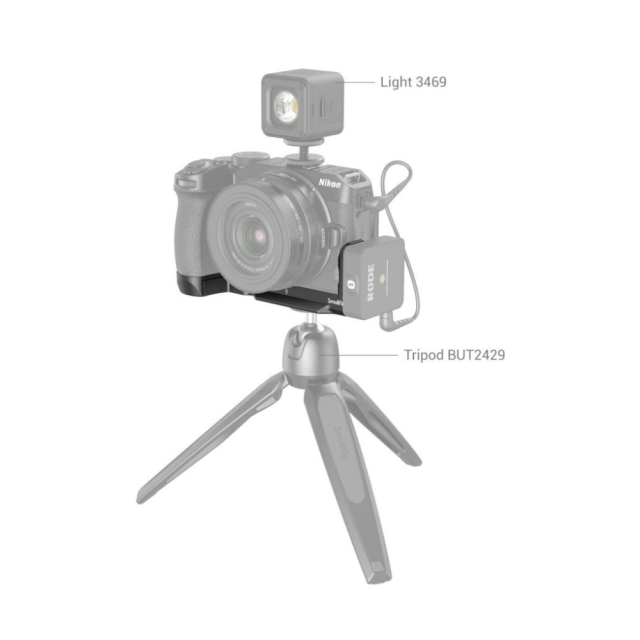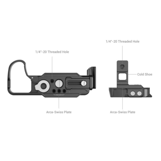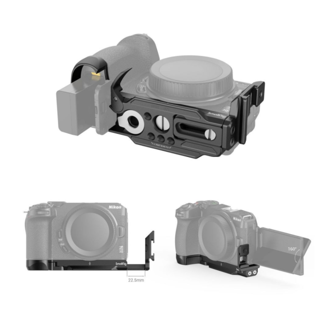 SmallRig Držák L pro Nikon Z 30 3860 je navržen tak, aby usnadňoval horizontální a vertikální fotografování a zlepšoval zážitek z držení. Držák L, který se připevňuje ke spodní části fotoaparátu pomocí šroubu 1/4"-20, má podložky zabraňující poškrábání a zkroucení. Na bateriových dvířkách je závěsné rameno, které se přizpůsobuje zakřivení fotoaparátu, takže se pohodlně drží a usnadňuje výměnu baterie. Základní deska i boční deska jsou vybaveny rychloupínací destičkou Arca-Swiss pro stativ Arca-Swiss pro horizontální i vertikální snímání. Boční deska je vybavena zejména cold shoe pro mikrofon, LED světlem a lze ji prodloužit, aby jí mohly procházet kabely, a výklopnou obrazovkou, která se otáčí o 160°; spodními otvory se závitem 1/4"-20 pro rychloupínací destičku (horní) stabilizátoru DJI RS 2 / RSC 2 / RS 2 / RS 3 / RS 3 Pro nebo stativu, otvory pro popruh na ruku modelu 3848 a vestavěným plochým šroubovákem pro rychlé uvolnění příslušenství.