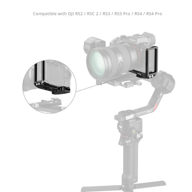 Spodní rychloupínací destička Arca-Swiss je kompatibilní se stativy typu Arca a gimbaly DJI RS 2 / RSC 2 / RS 3 / RS 3 Pro / RS 4 / RS 4 Pro, což umožňuje plynulý přechod mezi natáčením z ruky, stabilizátorem a stativem. Ve spodní části je také zásuvka QD pro připevnění ramenních popruhů (ID PSC2428).