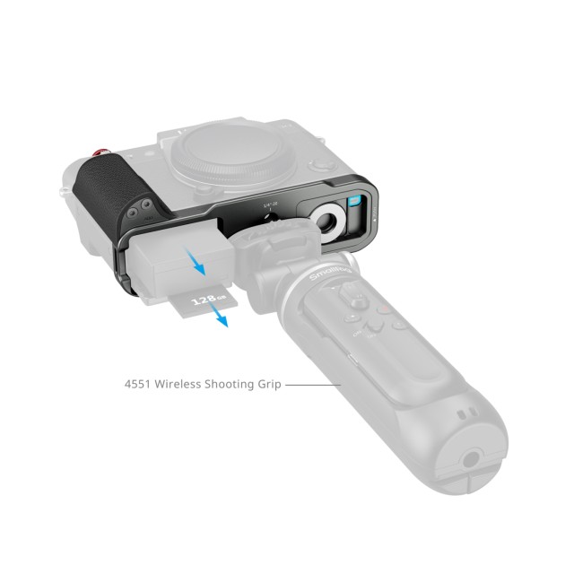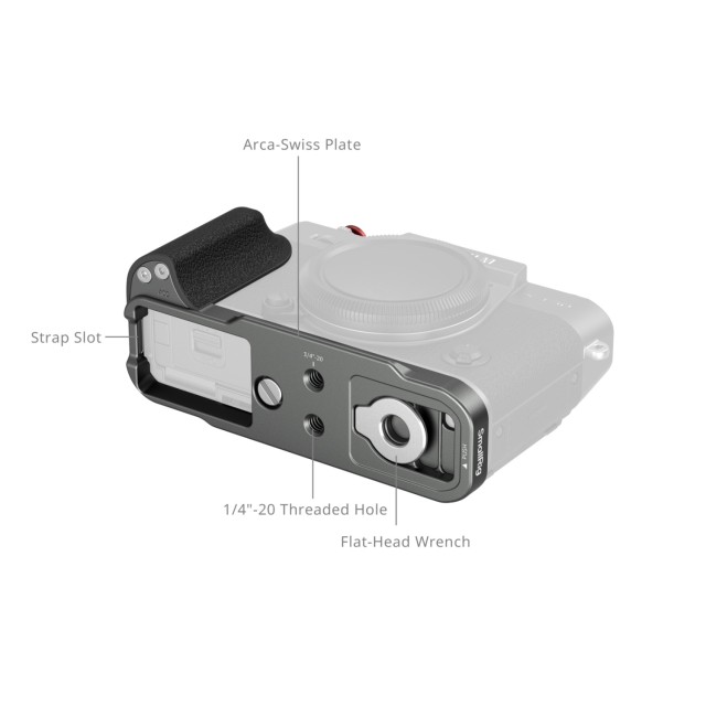 Rukojeť ve tvaru L zachovává plný přístup ke všem rozhraním fotoaparátu, včetně přihrádky na baterie, zaostřovacího kroužku, slotu pro paměťovou kartu a portů reproduktorů. Součástí této jednotky je také plochý klíč pro snadnou montáž a demontáž, spolu s krytkou spouště pro lepší hmatovou odezvu při fotografování.