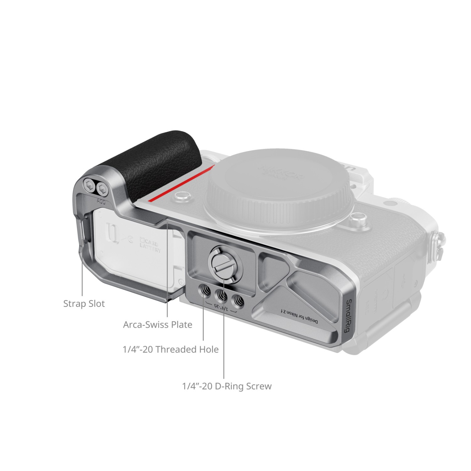 SmallRig L-tvarovaná montážní deska se silikonovou rukojetí pro Nikon Z f (stříbrná) 5706: Ergonomická rukojeť bez nutnosti použití nástrojů s deskou Arca-Swiss QR, ultralehká hliníková konstrukce o hmotnosti 102 g pro bezpečné fotografování z ruky a rychlou výměnu stativu na fotoaparátu Nikon Z f.