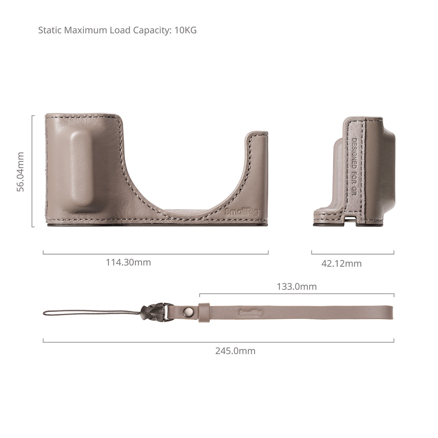 Kožené pouzdro SmallRig 5677 s poutkem na zápěstí pro Ricoh GR IV (šedé) nabízí stylovou ochranu a lepší manipulaci. Kombinuje prvotřídní kůži a hliníkovou konstrukci s plným přístupem k ovládacím prvkům fotoaparátu, baterii a upevnění stativu.