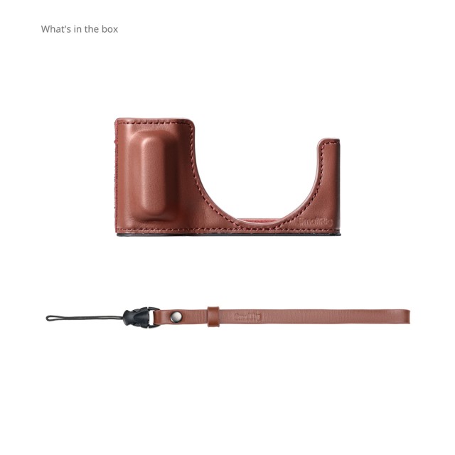 Pouzdro je vyrobeno z prvotřídní kůže a precizně zpracovaného rámu z hliníkové slitiny. Pevně obepíná boky a spodní část fotoaparátu, poskytuje komplexní ochranu a zároveň zajišťuje nerušený přístup ke všem portům, tlačítkům a prostoru pro baterii. Je kompatibilní s originálním krytkou objektivu.
