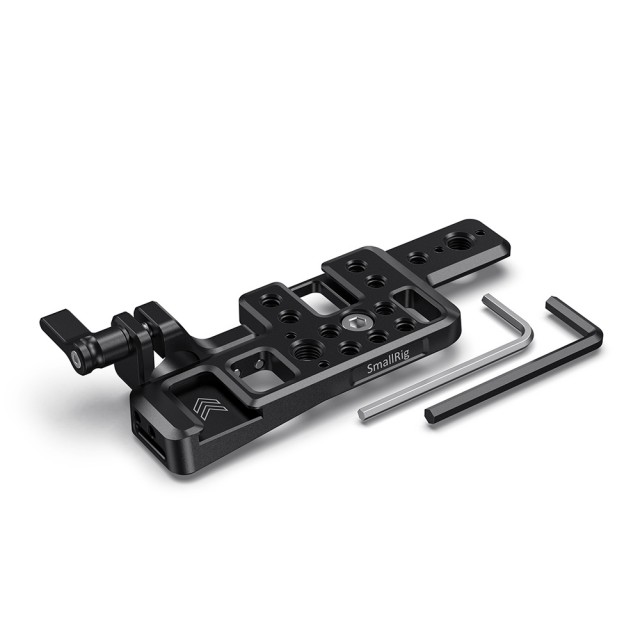 Lehká horní deska SmallRig pro BMPCC 4K a 6K APT2510 se bezpečně připevňuje ke kameře pomocí šroubu 1/4"-20 a zasouvá se do otvoru pro antirotační popruh na levé straně. Tato možnost je vhodná pro ty, kteří dávají přednost lehčímu ručnímu nastavení nebo pro lepší vyvážení gimbalu. Deska má řadu možností montáže včetně otvorů 1/4"-20 a 3/8"-16, polohovacích otvorů ARRI, dvou cold shoe a vestavěné lišty NATO, která usnadňuje připojení lehkého příslušenství, jako je malý mikrofon, 5palcový monitor nebo jednotka SSD. Dodávaná 15mm tyčová svorka je odnímatelná a lze ji namontovat na několik vybraných míst, takže k přidání dalšího příslušenství můžete použít samostatně dostupnou 15mm tyč.