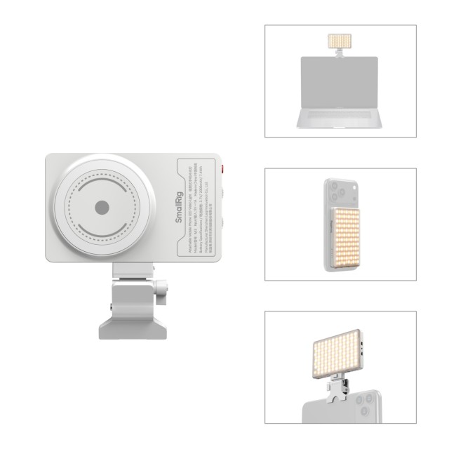 SmallRig M3 připojitelné LED video světlo pro mobilní telefony (ink blue) 5640 nabízí univerzální řešení pro připevnění s kompatibilitou MagSafe pro okamžité připojení a odpojení. Funguje hladce s iPhony podporujícími MagSafe nebo se snadno spáruje s zařízeními Android pomocí přiloženého kovového kroužku – bezpečné připevnění za pouhou sekundu! Navíc je vybaveno rychloupínací základnou, která umožňuje horizontální nebo vertikální připevnění na monitory nebo notebooky během několika sekund, doplněnou o nastavení sklonu 170° pro dokonalé umístění – zajišťuje instalaci bez použití nástrojů a bezproblémové nastavení osvětlení!