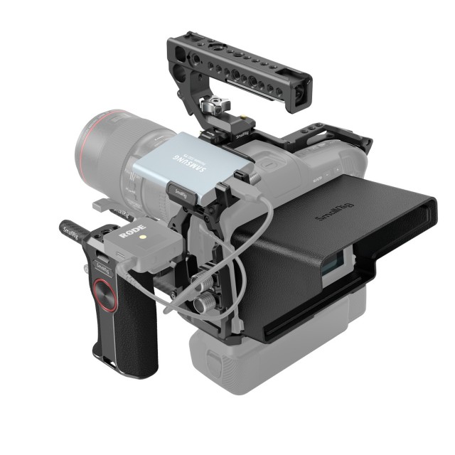 Sada SmallRig Master Kit 3582 je vyrobena z hliníkové slitiny a je pevná a odolná. Pracuje s odnímatelným kolíkem Pogo Pin a může se připojit přímo k bateriovému gripu ruční kamery Blackmagic pro napájení a je vybaven několika otvory se závitem 1/4"-20 pro podporu dalšího příslušenství. Ergonomicky navržená otočná rukojeť NATO s pohodlným silikonovým povrchem je odolná proti skluzu a potu. Stisknutím odemykacího tlačítka na boku se snadno otáčí o 360 stupňů, což umožňuje různé úhly a polohy při natáčení. Horní rukojeť NATO a mini lišta NATO umožňují rychlou montáž a demontáž pro lepší zážitek z natáčení a rychloupínací sluneční clona zachovává přístup k výklopnému displeji a zároveň umožňuje lepší sledování za jasných venkovních podmínek. Sada obsahuje lehkou svorku na dvojitou tyč, která je vhodná pro 15mm dvojitou tyč, pro montáž Follow Focus 3010 a Matte Box 2660. Držák SSD má konstrukci studené patky, která umožňuje rychlou montáž a demontáž. Součástí sady jsou také dva kusy ochranných krytů obrazovky, které lze snadno přilepit na místo pomocí elektrostatické absorpce a chránit tak obrazovku fotoaparátu.