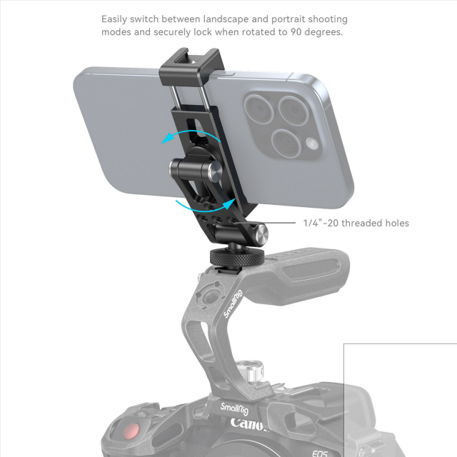 Univerzální držák umožňuje rychlé přepínání mezi režimy na výšku a na šířku, což usnadňuje fotografování nebo sledování. Jeho tři otočné klouby umožňují volné nastavení a zajišťují flexibilitu při používání. Dobře rozmístěné otvory se závitem navíc zjednodušují instalaci držáků powerbank, jako jsou modely 2336 a 2790.