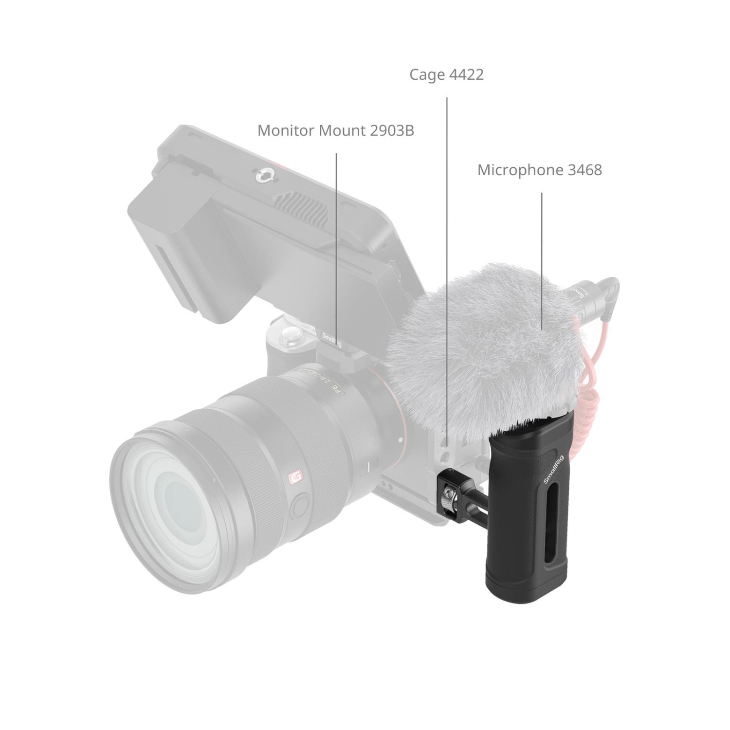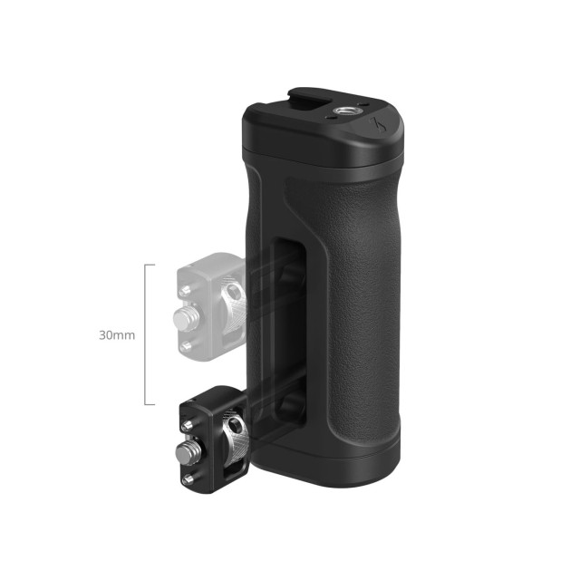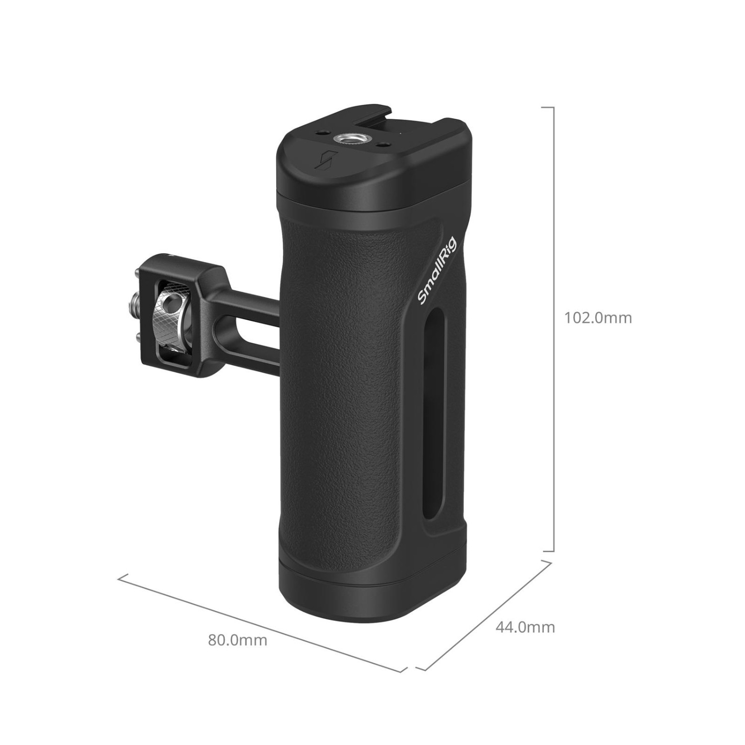 Mini boční rukojeť SmallRig s 1/4''-20 upevňovacím šroubem 5946 je navržena pro pohodlné ruční natáčení. Bezpečně se připevňuje ke kleci pomocí 1/4"-20 upevňovacích šroubů a nabízí univerzální možnosti rozšíření díky několika rozhraním. Mezi ně patří 1/4''-20 upevňovací otvory pro připevnění příslušenství, jako jsou dálkové ovladače (ID 3902) nebo magická ramena (ID 3873), stejně jako držáky pro připevnění monitorů (ID 2905B), mikrofonů (ID 3487) nebo videolamp (ID 3286B).