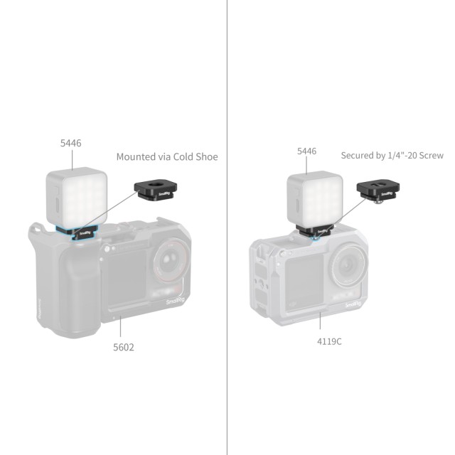 Držáky podporují dva způsoby upevnění: upevnění na studené patce a upevnění pomocí závitu. Tato flexibilita zajišťuje kompatibilitu s klecí SmallRig (ID 4119C) a magnetickými videolampami (ID 5446), stejně jako hladkou integraci s DJI Mic 2.