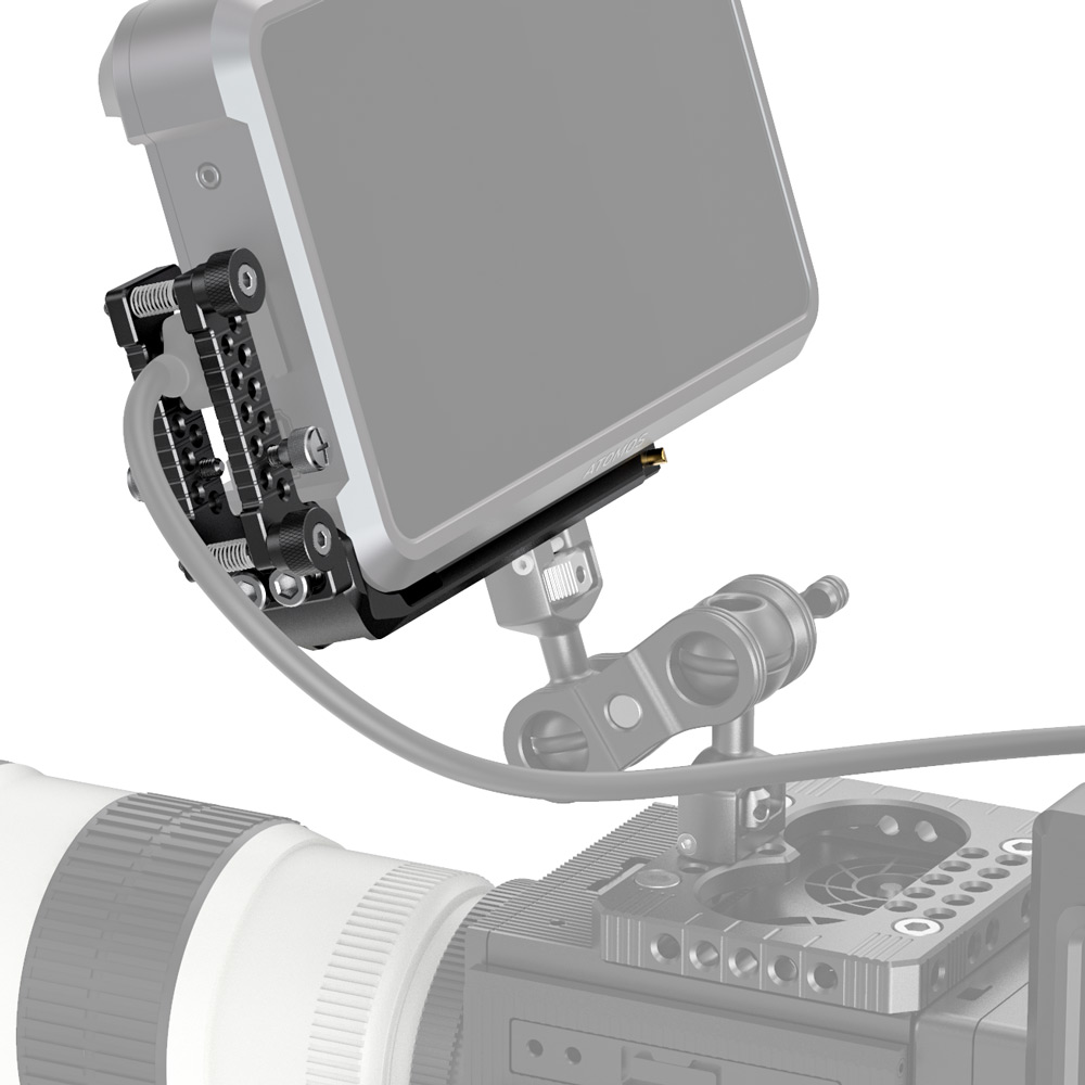 Montážní deska SmallRig a svorka kabelu HDMI pro Atomos Shogun 7 CMA2487 umožňuje snadné a bezpečné připevnění monitoru k sadě kamery. Deska se připevňuje ke spodní části monitoru Shogun 7 pomocí přiloženého šroubu 1/4"-20 a polohovací kolíky na desce se spojují s polohovacími otvory monitoru, aby se deska neprotáčela