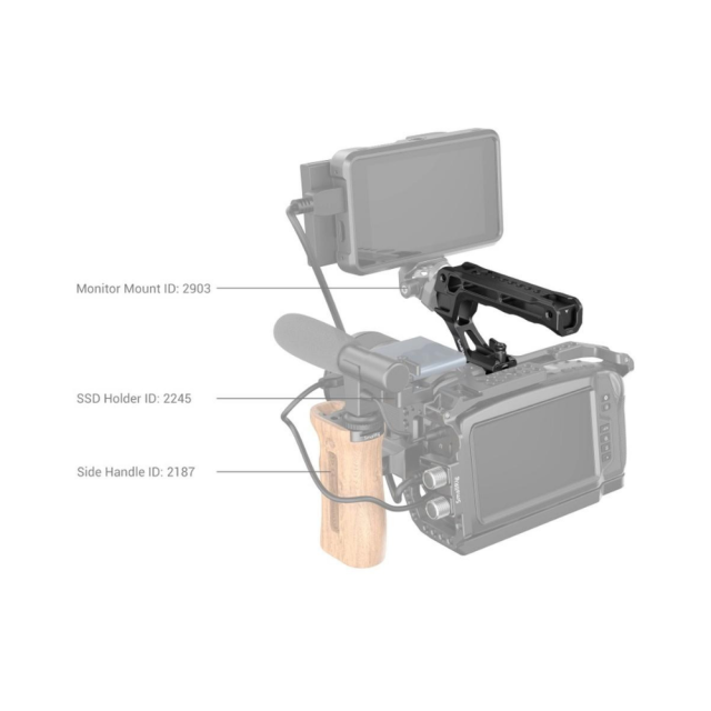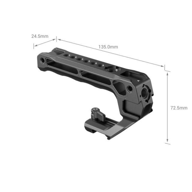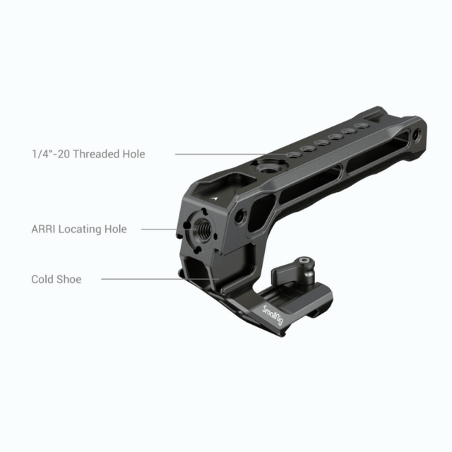 Horní rukojeť SmallRig NATO 3766 je navržena tak, aby usnadňovala natáčení pod nízkým úhlem a snižovala zatížení ruky. Ergonomická rukojeť s protiskluzovým silikonem je pohodlná a díky duté konstrukci váží pouhých 124 g. Má 3 přední cold shoe patky a 2 zadní patky, které umožňují současnou montáž mikrofonu, světla LED, monitoru a dalšího příslušenství. Polohovací otvory ARRI 3/8"-16 podporují držák monitoru 2903, 2348 pro montáž monitorů; otvory se závitem 1/4"-20 podporují rameno 2070 Magic Arm pro monitory a dálkové ovládání 2924 pro nahrávání. Jeho rychloupínací svorka NATO je vhodná pro všechny standardní lišty NATO.