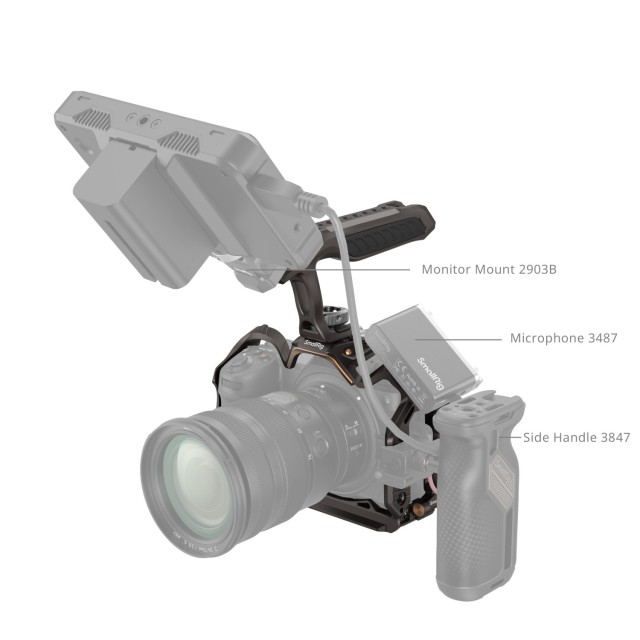 Sada SmallRig "Night Eagle" Cage Kit pro Nikon Z 6III 4522 je navržena tak, aby poskytovala vylepšené snímání z nízkého úhlu, ochranné pouzdro a všestranné možnosti rozšíření fotoaparátu. Klec se vyznačuje moderním designem s elegantními křivkami, jemnými zlatými prvky a novým bronzově hnědým barevným provedením. Sada obsahuje klec, horní rukojeť, svorku pro kabel HDMI a USB-C a držák pro studenou botku. Kabelová svorka využívá konstrukci "press-and-flip", která umožňuje snadný přístup k rozhraním bez nutnosti demontáže a zabraňuje náhodnému přerušení signálu, čímž zajišťuje stabilní přenos signálu. Odnímatelný držák Cold Shoe je ve spodní části vybaven polohovacími kolíky proti vychýlení.