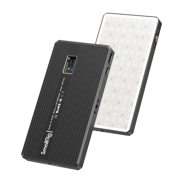 Kamerové RGBWW LED světlo SmallRig Pix M160 je vybaveno interním 3800mAh lithiovým akumulátorem s možností nabíjení pomocí rozhraní USB Type-C a použití v roli power banky pro mobilní telefony. Světlo lze upevnit magneticky či prostřednictvím dodávané 1/4"-20 montáže s kulovou hlavou (SmallRig 761). Světlo nabízí nastavení jasu v rozsahu 0-100 %, barevné teploty v rozsahu 2500 - 8500 K a barevného tónu v plném 360° rozsahu vč. nastavení saturace. Nechybí rovněž 12 světelných efektů („Rainstorm“, „Fire and Candlelight“, „TV“, „Breathing Light“ ad.). Model je osazen 160 LED elementy (CRI95+, TLCI98) s max. jasem 1350 cd/m2 (@0,5 m) a také integrovaným OLED displejem pro snadné nastavování parametrů. Dodává se včetně difúzního a voštinového filtru.