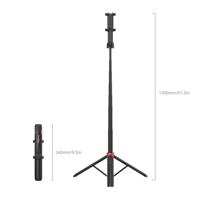 SmallRig Portable Selfie Stick Tripod ST-25 Black 4729 má všestrannou konstrukci 2 v 1 kombinující funkci selfie tyče a stativu s nastavitelnou délkou od 370 mm do 1300 mm. Skládací svorka na telefon umožňuje uchytit telefony iPhone i Android a nabízí tak širokou kompatibilitu. Díky vestavěné studené patici a závitu 1/4"-20 na svorce telefonu umožňuje snadné rozšíření pro připojení příslušenství, jako jsou mikrofony a osvětlení, pro rozšíření možností fotografování. Kromě toho je výrobek dodáván s dobíjecím dálkovým ovladačem Bluetooth, který zaručuje stabilní bezdrátové připojení s efektivním dosahem až 10 metrů, což uživatelům poskytuje větší volnost pohybu při fotografování. Držák telefonu nabízí možnost otáčení o 360°, zatímco opěrné rameno umožňuje nastavení úhlu v rozsahu 180°, aby se přizpůsobilo široké škále úhlů snímání. Také základna stativu je vybavena tlačítkem s jedním kliknutím pro rychlé a snadné nastavení. Pohodlně se skládá do kompaktních rozměrů pouhých 60,0 x 30,0 x 240,0 mm, takže je ideální pro cestování nebo outdoorová dobrodružství.