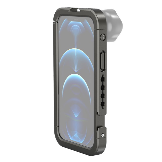 SmallRig Pro Mobile Cage pro iPhone 12 Pro 3075 je multifunkční klec na mobilní telefon speciálně navržená pro váš iPhone 12 Pro, která vám pomůže dosáhnout vyšší úrovně fotografování mobilním telefonem, natáčení videí, vlogování, živého vysílání, rozhovorů a filmování. Klec se dodává se dvěma držáky pro upevnění mikrofonu a světla LED. Je také vybaven několika otvory se závitem 1/4 nahoře, dole, vlevo a vpravo pro připojení různého příslušenství podle vašich potřeb, jako je stativ, boční rukojeť atd. Podporuje horizontální i vertikální snímání. Vestavěné podložky pomáhají tlumit nárazy a zabraňují poškrábání telefonu. Držák objektivu na zadní straně umožňuje k telefonu snadno připojit externí objektiv. Konstrukce Quick-Lock zajišťuje pevnější uchycení a rychlejší způsob montáže/demontáže telefonu a je bezpečnější a stabilnější. Telefon se po uzamčení nevysune v důsledku náhodného dotyku.