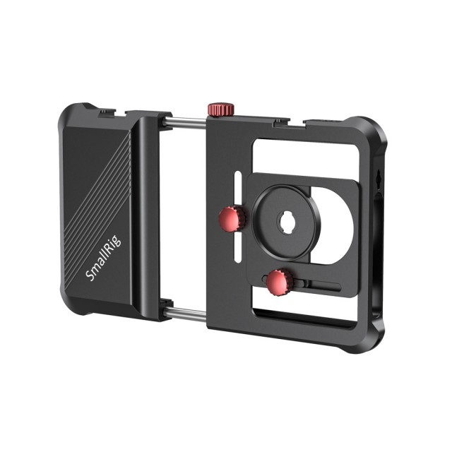 Profesionální univerzální klec na mobilní telefon SmallRig CPU2494 je navržena pro většinu chytrých telefonů na trhu. Je kompatibilní se smartphony o šířce od 63,5 mm do 87,5 mm. Je vybaven pružinovou svorkou pro rychlé upevnění/odpojení telefonu s větší zajišťovací silou. Klec je vybavena několika otvory se závitem 1/4"-20 a dvěma cold shoes pro upevnění LED světla, mikrofonu, stativu atd. Tyto otvory se závitem 1/4"-20 a zářezy lze použít k upevnění bezpečnostní lišty NATO mini pro klec na mobilní telefon SmallRig BUN2395 a boční otvory se závitem 1/4"-20 lze použít k upevnění svorky kabelu mobilního telefonu SmallRig BSC2390 pro zajištění pevného připojení kabelu, jako je kabel Lightning, kabel USB-C nebo adaptér, nebo k připevnění hliníkové boční rukojeti SmallRig ke kleci pro smartphone HSS2424 pro fotografování z ruky. Dodává se s držákem s 37mm závitem pro upevnění objektivů s 37mm závitem. Klec má ve spodní části dva otvory pro připevnění šňůrky. Vestavěné gumové podložky by mohly chránit telefon před poškrábáním.