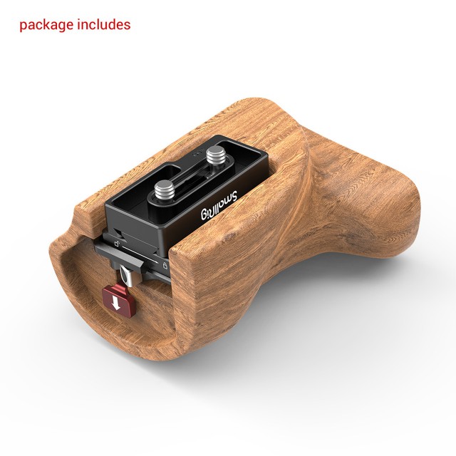 Rychloupínací konstrukce umožňuje posunutí rukojeti během několika sekund. Lze ji připevnit na boční stranu kamer řady Z CAM E2 nebo klecí SmallRig E2 řady CVZ2264, CVZ2423 a všech klecí kamer, které mají na boční straně dva standardní vertikální závity 1/4"-20 s maximální vzdáleností až 24 mm. Součástí balení je vestavěný imbusový klíč pro zajištění šroubu rukojeti, který je uložen uvnitř dna. Hladká dřevěná rukojeť poskytuje pevný a pohodlný úchop a dobře funguje i v situaci nízké teploty.