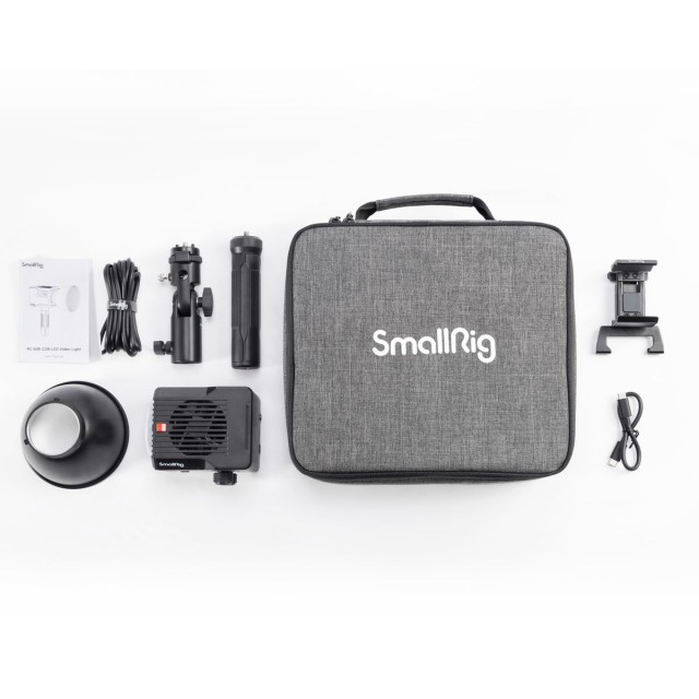 SmallRig RC 60B COB LED video světlo 4376 je nová generace COB LED video světla, kterou uvedla na trh společnost SmallRig. Díky novému samostatně vyvinutému systému řízení napájení a chlazení má nová LED vestavěnou baterii, která může při maximálním výkonu pracovat 45 minut při zachování kompaktních rozměrů a nižší hmotnosti. Hlavní tělo je vyrobeno z nehořlavého PC+ABS třídy V0 a je vylepšeno kovovou základnou, což snižuje hmotnost o 30 % a zajišťuje dlouhodobou odolnost při provozu. Výrobek váží pouhých 650 g, resp. přibližně 1,1 kg s rukojetí a mini softboxem D30, díky čemuž je LED dioda vhodná pro fotografování a natáčení videa v pohybu. Osvětlení 1m/5600K (holý světelný zdroj) dosahuje 2 670 luxů a 11 200 luxů ve spojení s 45° mini hyperreflektorem. Pokročilé ukazatele umožňují přesnější podání barev a obnovení slunečních spekter: CRI dosahuje hodnoty 97+, TLCI 98+, průměr SSI dosahuje hodnoty 89, TM-30 Rf 96 a TM-30 Rg 100. Samostatné knoflíky pro nastavení CCT/INT a 1,3" displej LED pomáhají přesně a rychle nastavit parametry světla. Tato položka je vybavena příslušenstvím pro ovládání světla (miniaturní hyperreflektor/ volitelný miniaturní softbox), montážním příslušenstvím (stojan/rukojeť světla), příslušenstvím pro napájení (volitelný držák powerbanky a 20cm kabel USB-C na USB-C) a přenosnou brašnou pro přenášení a představuje tak komplexní řešení, které splní vaše požadavky na kvalitu světla, přenosnost, vysokou účinnost, přesné ovládání světla, snadnou instalaci, dlouhou výdrž baterie atd.