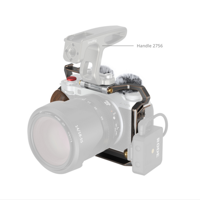 Ergonomická dřevěná rukojeť poskytuje pohodlné a bezpečné držení a zlepšuje manipulaci při delším fotografování. Klec je vybavena několika rozhraními, včetně závitového otvoru 1/4"-20, polohovacího otvoru ARRI 3/8"-16 a držáku cold shoe, což umožňuje připojit širokou škálu příslušenství, jako jsou mikrofony, světla a monitory. Je také vybaven vestavěnou rychloupínací destičkou Arca-Swiss pro rychlou a snadnou montáž na stativy typu Arca.