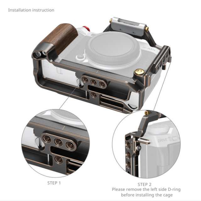 Klec SmallRig "Retro" pro fotoaparát FUJIFILM X-M5 4892 kombinuje vintage estetiku s moderní funkčností a nabízí robustní ochranu a univerzální možnosti příslušenství. Tělo z hliníkové slitiny, dřevěná rukojeť a několik montážních rozhraní z ní dělají dokonalého společníka pro vylepšení vašich fotografických zážitků.