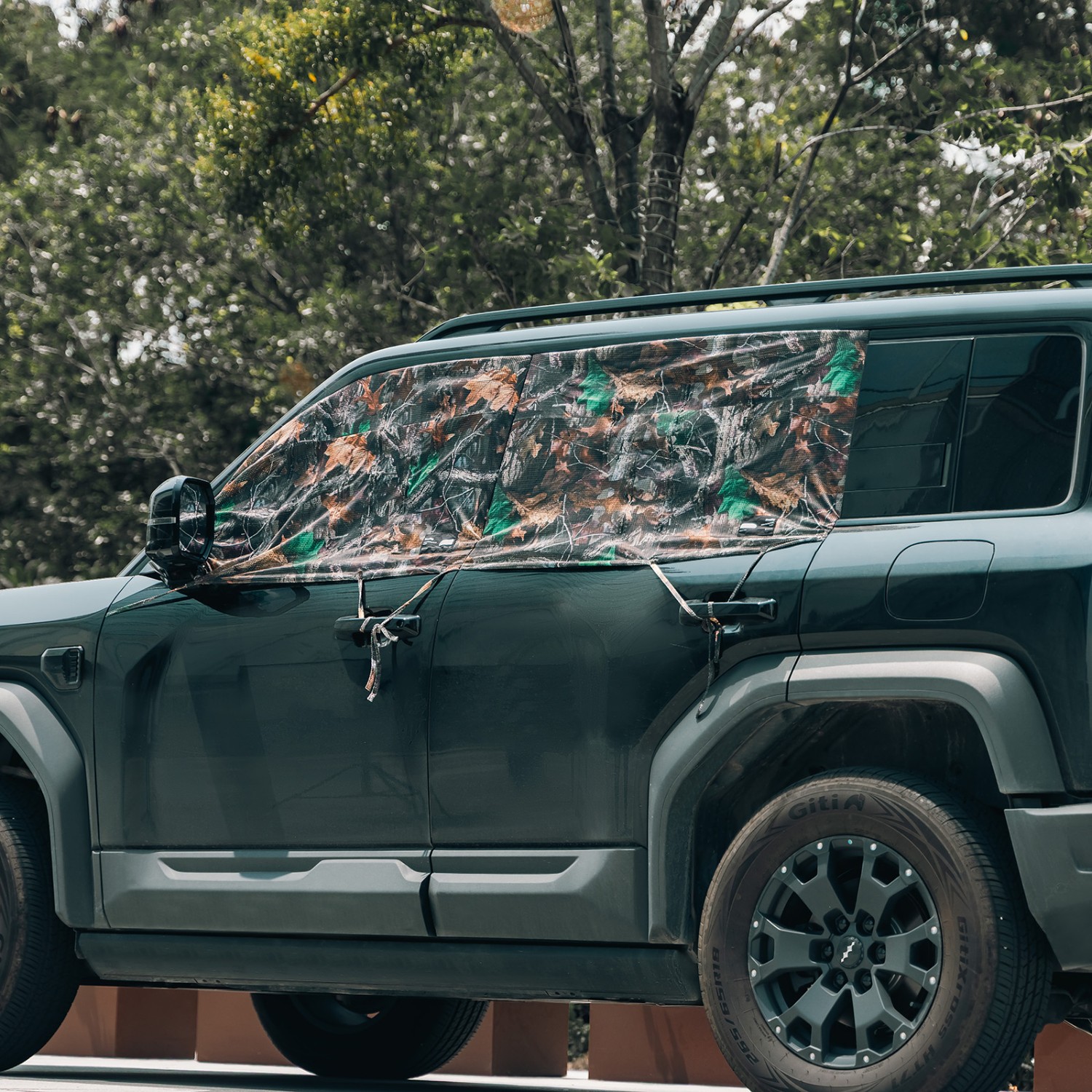 Instalace je jednoduchá – záclonu nasaďte na okno a upevněte ji ve dvou bodech pomocí popruhů, které zajistí bezpečné a univerzální uchycení na většinu terénních SUV. Tkanina je ošetřena odolnou vodoodpudivou vrstvou, která nabízí spolehlivou ochranu před deštěm, sněhem, prachem a dokonce i otravným hmyzem, takže můžete pohodlně fotografovat v jakémkoli prostředí.