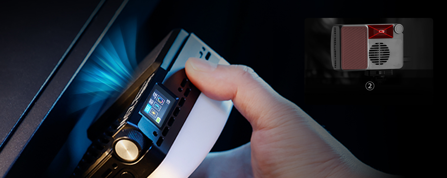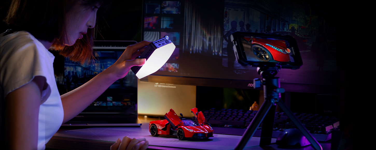 Všestranné osvětlení RGB+CCT: Nabízí CRI 96, TLCI 99, nastavitelnou teplotu dvou barev od 2500K do 10000K, více než 36000 barev a 14 vestavěných světelných efektů. Ideální pro fotografování zátiší, jídla a kreativní portrétní osvětlení.