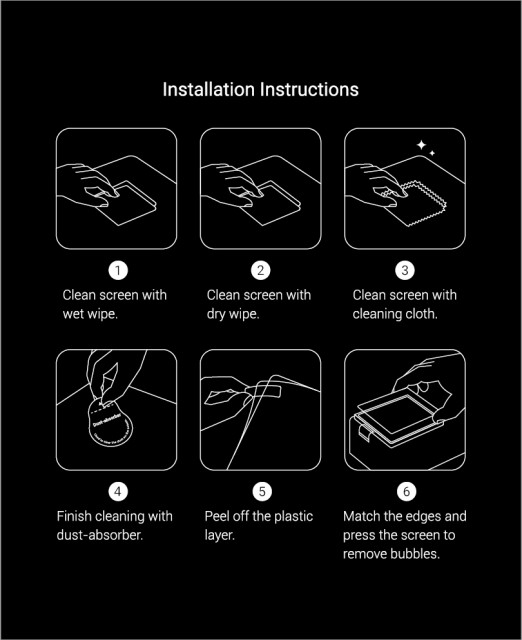 Obsahuje dva kusy ochranné fólie pro LCD displej kamery BMPCC 6K Pro. Tato 0,4 mm tenká tvrzená (IK03) skleněná fólie je upevněna pouze elektrostatickou silou a chrání displej před poškrábáním, prachem, vodou, oleji apod., bez bublin a se zachováním citlivosti dotykového ovládání. Sada obsahuje také alkoholem napuštěné ubrousky a čistící utěrky.