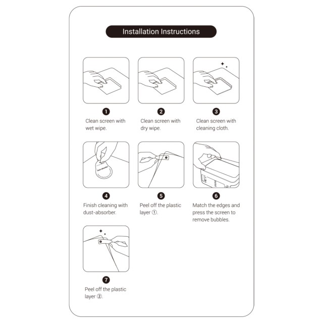 Jeho ultratenký design a vysoká citlivost na dotek zajišťují přesné ovládání identické s holým displejem. Balení obsahuje kompletní instalační sadu – alkoholové ubrousky, čisticí hadříky a samolepky pohlcující prach – pro snadnou aplikaci bez prachu.