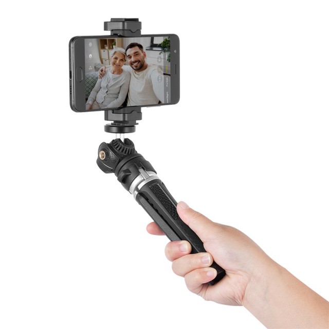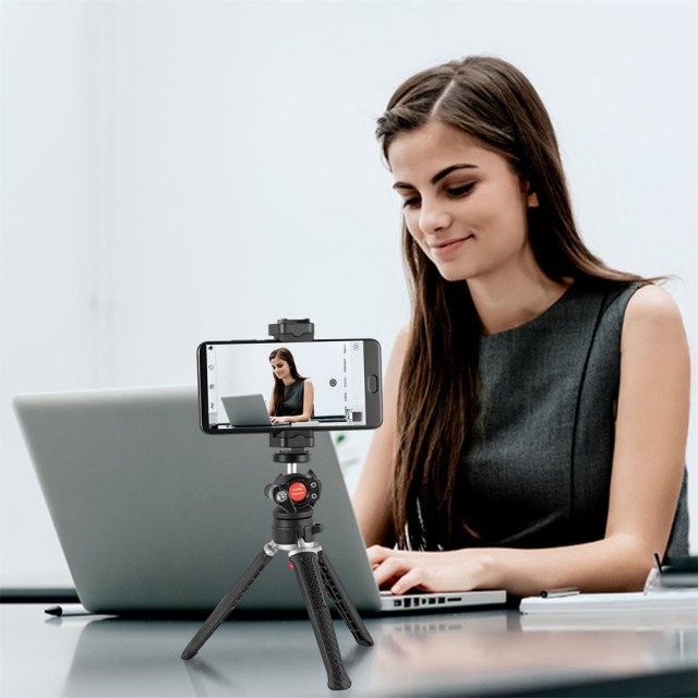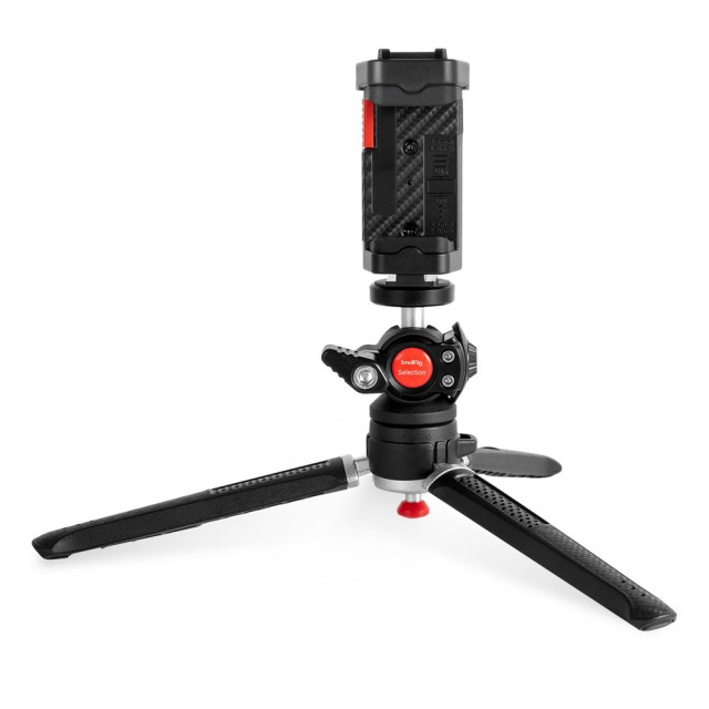 Stolní stativ SmallRig Selection DT-02 3256 je lehký, kompaktní mini stativ s bezpečnou nosností až 2 kg. Ideální pro bezzrcadlovky, kompaktní fotoaparáty, chytré telefony, akční kamery atd. Stisknutím tlačítka na spodní straně můžete snadno přepínat mezi různými výškami stativu. Ballhead umožňuje snímání z různých úhlů a má standardní montážní otvor 1/4"-20 pro upevnění ramene nebo jiného příslušenství. Má také rychloupínací držák pro smartphony s šířkou od 56 mm do 86 mm. Přiložené ovládání Bluetooth umožňuje ještě snadnější ovládání chytrým telefonem.