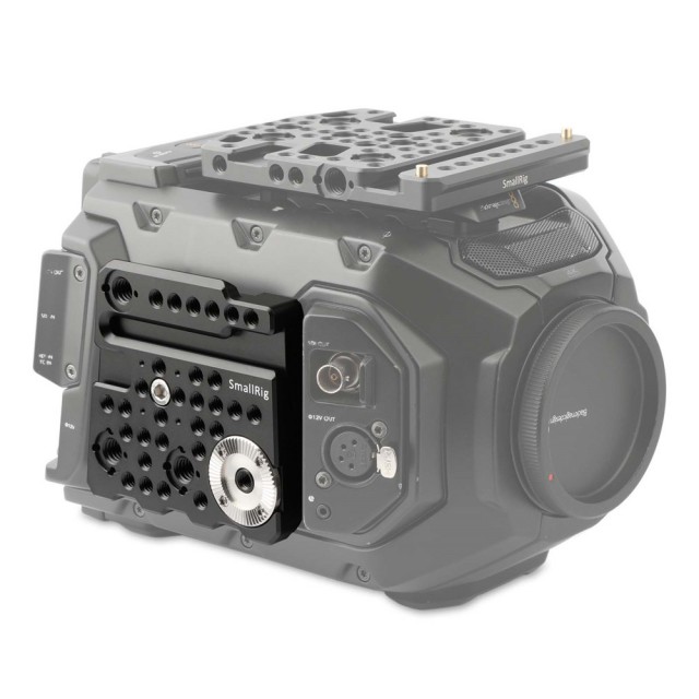 SmallRig Side Plate pro Blackmagic Design URSA Mini/Mini Pro/Mini Pro G2 APS1854 je multifunkční deska pro montáž na pravou stranu kamery. Přidává montážní body včetně otvorů se závitem 1/4''-20 a 3/8''-16, lokalizačních otvorů ARRI, držáku cold shoe a lišty NATO. Před instalací desky sejměte původní rozetu fotoaparátu a připevněte ji k této desce; desku připevněte k fotoaparátu třemi šrouby M2,5 a kolíkem proti přetočení. Uvnitř je také vybavena gumovými podložkami zabraňujícími poškrábání.