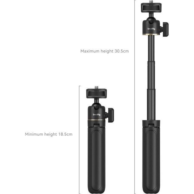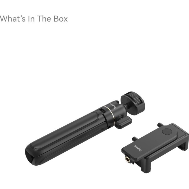 SmallRig Smartphone Vlog Tripod Kit VK-20 Advanced Version 4364 se skládá ze stolního teleskopického stativu a držáku pro chytrý telefon. Tato kompaktní a přenosná sada má působivou nosnost 1,5 kg / 3,3 lb. Jedním šroubem 1/4"-20 se stativ připevňuje k držáku chytrého telefonu, který je vybaven dvěma úchyty cold shoe pro mikrofon, LED videosvětlo atd. Držák je vybaven jedinečnou snadno vysouvatelnou konstrukcí pro rychlé upevnění a sejmutí smartphonu. Otáčení rukojeti o 360 stupňů umožňuje bezpečné a rychlé přepínání mezi orientací na výšku a na šířku, zatímco dva držáky cold shoe umožňují připevnění kompatibilního příslušenství.