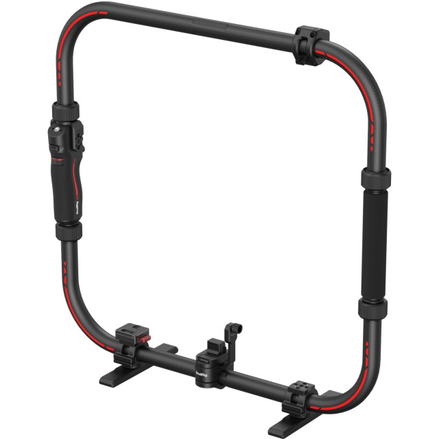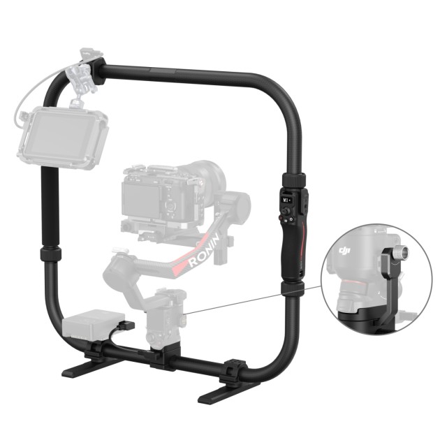 Různé možnosti montáže zahrnují polohovací otvory 1/4"-20 a 3/8"-16 spolu se dvěma porty D-Tap pro všestranné rozšíření příslušenství. Navíc otočná patka základny zajišťuje stabilní umístění během přestávek ve fotografování. Ergonomická rukojeť na pravé straně, vyrobená z lehkých uhlíkových vláken, zvyšuje pohodlí při delším používání a doplňuje estetiku designu DJI.