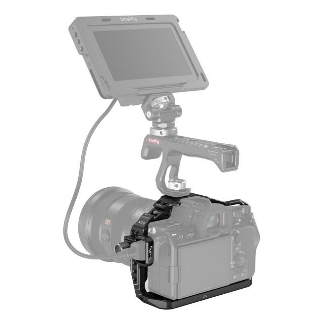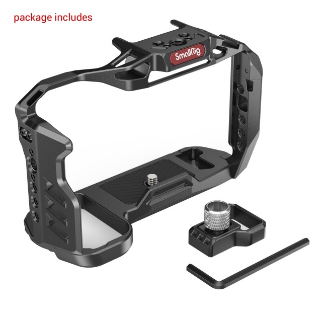 SmallRig Standard Cage Kit pre Sony Alpha 7S III 3180 pevne uzamkne fotoaparát pomocou jednej skrutky 1/4"-20 na spodnej strane a jednej skrutky M2,5 na boku. Skrutka M2,5 musí prechádzať otvormi pre ramenný popruh na boku fotoaparátu. Klietka 3065 je vybavená viacerými štandardnými montážnymi bodmi a poskytuje úplný prístup ku všetkým portom, spodnej časti a dvierkam batérie fotoaparátu. Okrem viacerých otvorov so závitom 1/4"-20, 3/8"-16 a otvorov pre ramenný popruh je klietka vybavená aj štandardnými lištami NATO a úchytmi pre cold shoe. Na klietku môžete namontovať príslušenstvo, ako napríklad držiak SmallRig Monitor Mount 2904, mikrofóny, bočnú rukoväť SmallRig 2187 a HSN2093 atď. Aby sa zabránilo náhodnému odpojeniu kábla HDMI fotoaparátu, klietka je vybavená svorkou na kábel HDMI, ktorú možno pripevniť k bočnej strane klietky pomocou skrutky s palcom 1/4"-20, pričom zaisťovacia časť je nastaviteľná. Klietka je vyrobená z materiálu zo zliatiny horčíka a hliníka, čo znižuje hmotnosť o 40 % v porovnaní s tradičnou klietkou. Okrem toho sa na spodnej strane klietky nachádza magnetický skrutkovač, ktorý vám umožní montáž.