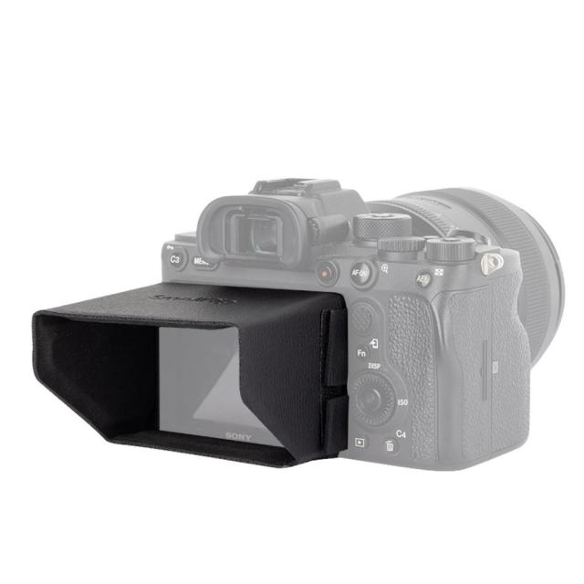 Sluneční clona SmallRig pro fotoaparáty Sony A7/A9/A1 Select řady 3638 je určena k ochraně displeje LCD před odraženým světlem během fotografování. Jeho čtyři okraje zajišťují, že obrazovka fotoaparátu zůstane čistá v různých podmínkách fotografování z různých úhlů. Povrchová vrstva je vyrobena z materiálu odolného proti poškrábání a slunečnímu záření, zatímco vnitřní vrstva je vyrobena z mikrovláknové tkaniny, která účinně snižuje odraz světla. Kryt se upevňuje pomocí suchého zipu a rychle se přichytí přímo na displej fotoaparátu. Po vyjmutí jej lze složit do jednoho celku a snadno uskladnit.