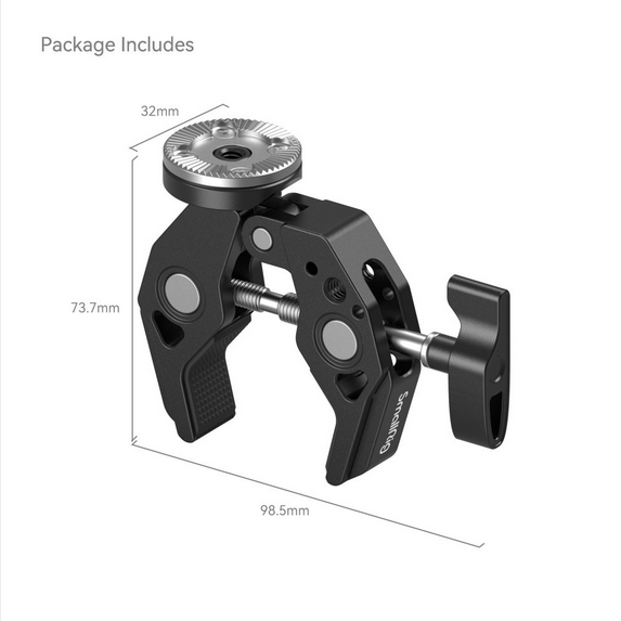 Svorka SmallRig Super Clamp s rozetovým držákem ARRI 4249 je určena k upevnění dálkových rukojetí na stativ nebo slider pro snadnější natáčení a pohyb kamery. Podporuje standardní šrouby M6 a rukojeti s rozetami ARRI, jako jsou Nikon MC-N10 a Sony FX6. S rozsahem upnutí 14-55 mm může tato položka upnout většinu stativových rukojetí a tyčí a je vybavena vestavěnými protiskluzovými polštářky, které zajišťují bezpečnost a stabilitu zařízení. Je vybaven několika montážními body, například otvorem se závitem 1/4"-20 a polohovacím otvorem ARRI 3/8"-16 pro upevnění ramen Magic Arm 3875 a 2115C atd. Kromě toho je svorka vyrobena z hliníkové slitiny letecké třídy a nerezové oceli pro větší robustnost a odolnost.