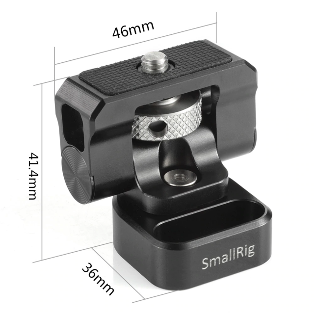 Otočný a naklápěcí držák monitoru SmallRig 2294 je určen k upevnění monitoru na klec kamery, rukojeť nebo jiný montážní systém pomocí dvou šroubů 1/4"-20. Robustní hliníkový držák umožňuje otáčení do stran o 360° a naklápění o 150° bez použití nářadí. Lehký držák váží pouhých 68 g a unese 5" a 7" monitor do hmotnosti 1,2 kg. Je vybaven gumovými podložkami na horní straně, které zabraňují poškrábání monitoru. Šroub s palcem je vybaven otvory pro šestihranný klíč k opětovnému utažení šroubu, aby byl váš monitor v bezpečí. Pokud držák nepoužíváte, můžete jej jednoduše složit a uskladnit.