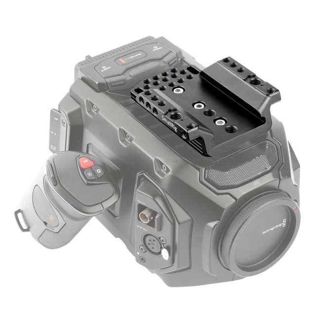 SmallRig Top Plate pro Blackmagic Ursa Mini/Mini Pro 1958 je speciálně navržen pro Blackmagic Ursa Mini/Ursa Mini Pro. K pevnému zajištění EVF a horní desky se používají originální 3/8'' šrouby. Kolejnice EVF odpovídá originálnímu EVF a EVF můžete posunout až na 50 mm. Do polohovacích otvorů ARRI lze připevnit držák příslušenství ARRI, například 15mm svorku SmallRig s držákem příslušenství ARRI 3/8''-16 Hole 2001. Horní část fotoaparátu by mohla být zajištěna v otvorech se závitem 1/4'' pomocí tří šroubů 1/4''. Do otvorů se závitem 1/4''-20 lze připevnit horní držák SmallRig pro Blackmagic URSA Mini/ Mini PRO 2000. Dutý otvor je navržen pro snížení hmotnosti a šikmá konstrukce umožňuje, aby EVF dokonale zapadl do horní desky.