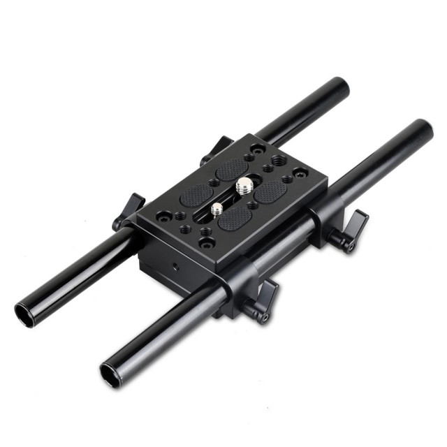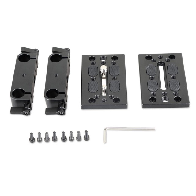 SmallRig Tripod Mounting Kit W/15mm Rail Block 1798 je kombinován dvěma montážními deskami SmallRig Tripod s 15mm blokem kolejnice. Používá se pro dlouhé, zepředu těžké fotoaparáty a kamery. Připevněte ji ke stativové desce pomocí šroubu 3/8''-16 a šroubu 1/4''-20 a poté na ni můžete namontovat základní desku s dove tail. Upíná se na 15mm kolejnice pro upevnění příslušenství, jako je follow focus, matte box atd. Drážka 40 mm umožňuje správně vyvážit přední těžký fotoaparát na stativu.