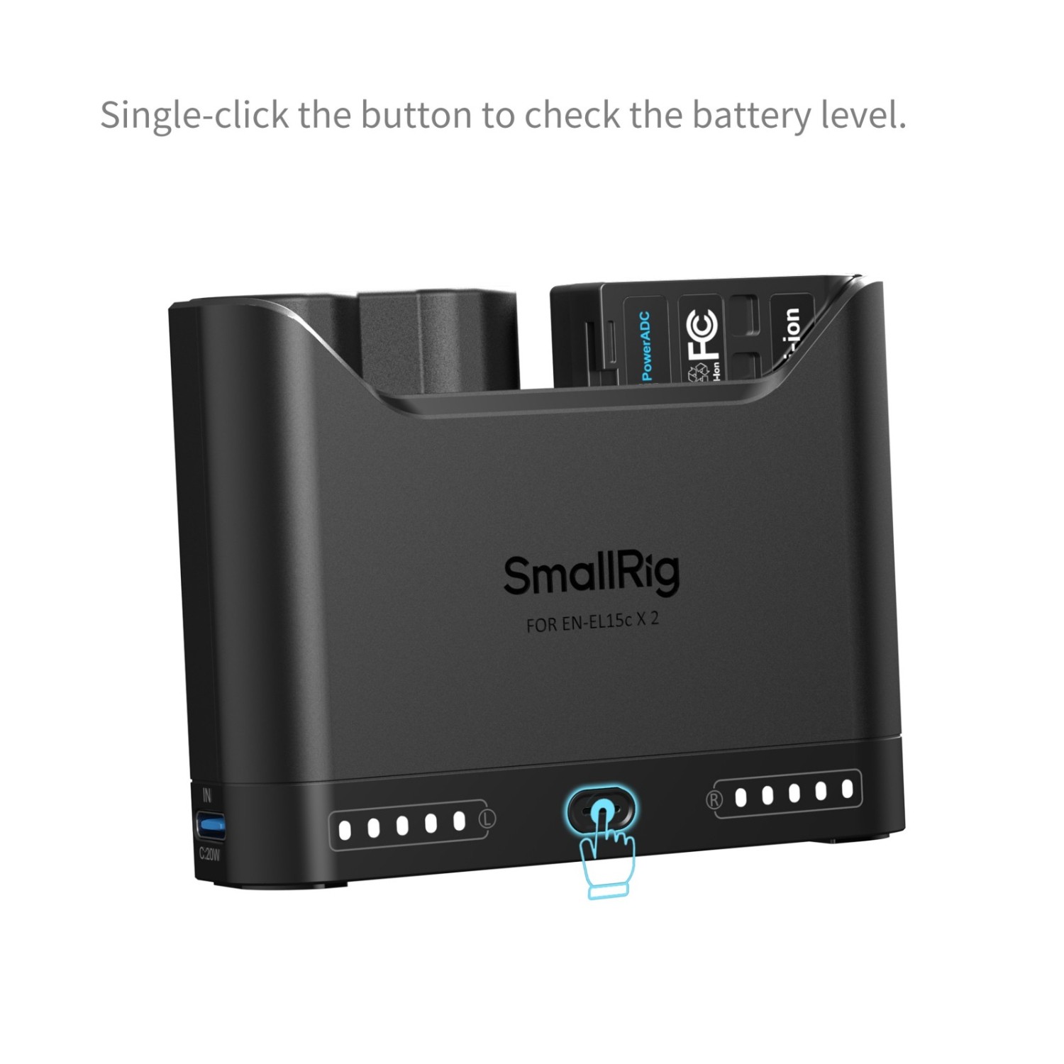 Každý nabíjecí kanál je vybaven pěti LED indikátory, které zobrazují úroveň nabití v 20% krocích, a to i bez externího napájení. Červená kontrolka se rozsvítí, když je úroveň nabití baterie kriticky nízká. Nabíječka navíc obsahuje univerzální vstupní port USB-C a je dodávána s kabelem pro rychlé nabíjení, díky čemuž je kompatibilní se síťovými adaptéry, autonabíječkami a powerbankami pro všestranné možnosti nabíjení.