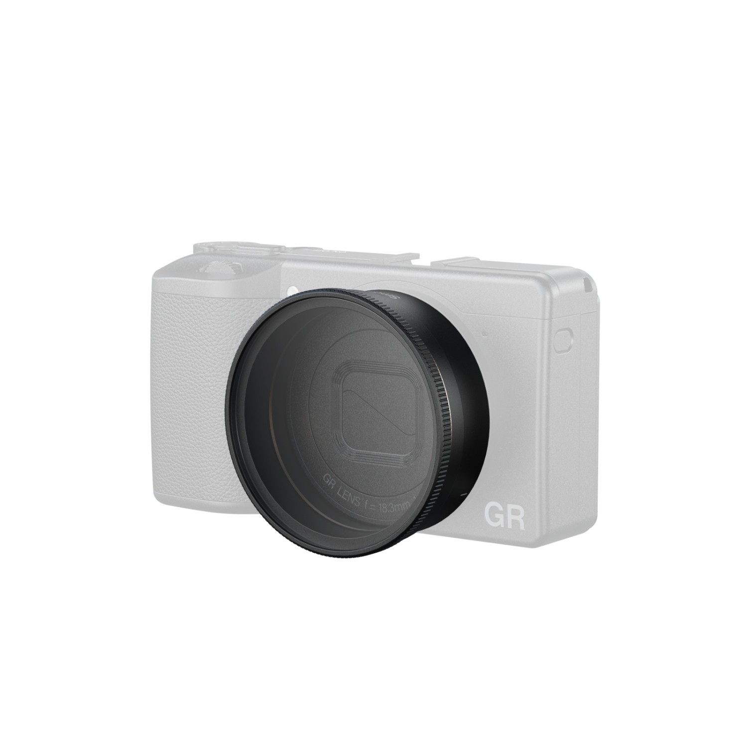 Pro větší ochranu je součástí balení speciální silikonová ochranná krytka, která chrání filtr i sluneční clonu během skladování. Matná černá povrchová úprava a zlatý akcentní prstenec jsou pečlivě navrženy tak, aby doplňovaly estetiku fotoaparátu GR IV. Tato pozornost věnovaná detailům zajišťuje, že fotoaparát si zachovává svůj elegantní profil a styl, a zároveň těží z nekompromisní profesionální ochrany.