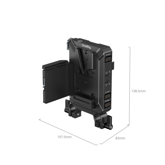 Deska pro uchycení baterie SmallRig V-Mount nabízí efektivní řešení pro integraci baterií V-mount do vaší kamerové soupravy. Tento systém, navržený pro rychlé nasazení baterie a distribuci energie mezi více zařízeními, zahrnuje desku pro baterii V-mount a modulární ochranný kryt LCD displeje. Deska se bezpečně připevňuje ke kompatibilním soupravám, což umožňuje rychlou výměnu baterií a nepřerušené napájení.