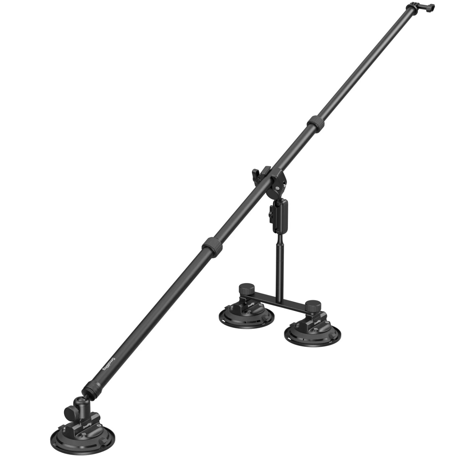 Tato montážní sada, vyrobená převážně z hliníkové slitiny, zajišťuje odolnost a stabilitu s dynamickou nosností 0,5 kg / 1,1 lb, aby vyhovovala většině akčních kamer na trhu. Přísavky jsou vybaveny mechanismem push-pump a bílou bezpečnostní indikační linkou pro jasné sledování stavu přísavky, což zajišťuje bezpečnou a stabilní podporu. Teleskopická tyč se nastavuje od 45 do 120 cm (17,7 až 47,2 palce) a je vybavena otočnými zámky na každé sekci, které zabraňují sklouznutí během dynamického natáčení.