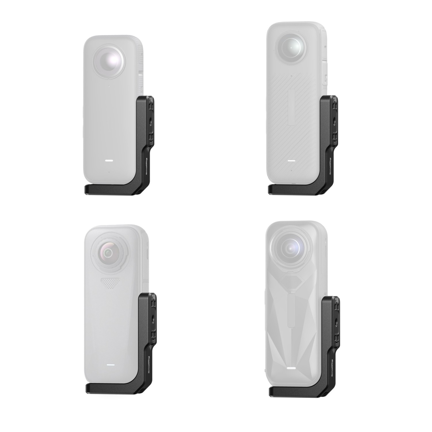 Je vybaven jedním otvorem se závitem 1/4"-20 a dvěma rychloupínacími držáky Insta360, což zajišťuje kompatibilitu s většinou běžných adaptérů. Integrovaný šroub 1/4"-20 umožňuje rychlou instalaci a demontáž bez použití nářadí.
