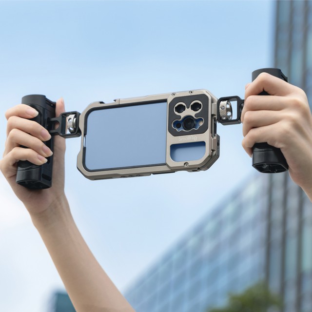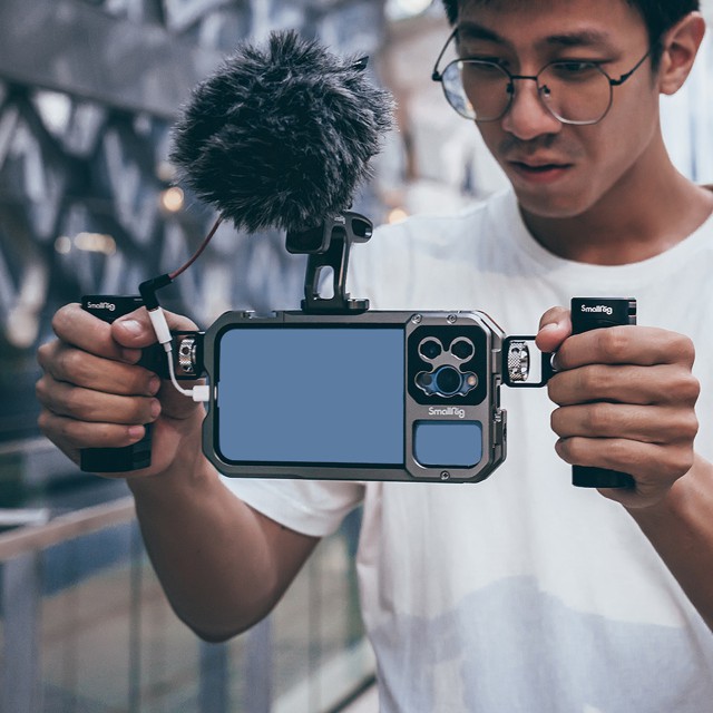 Sada SmallRig Video Kit Lite pro iPhone 13 Pro Max 3604 má dvě rukojeti pro stabilní natáčení a vlogování. Je vybaven otvory se závitem 1/4"-20 proti pootočení a cold shoes pro podporu příslušenství, jako je stativ BUT2429, mikrofon 3452…