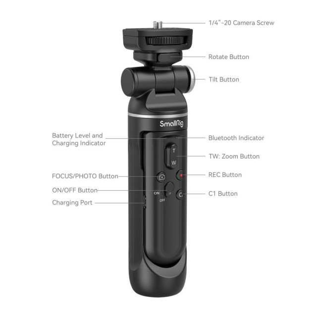 4. Stativ se vysouvá o 15 cm, otáčí se o 360° a naklání se o 180°, takže nabízí širší záběr a natáčení z více úhlů